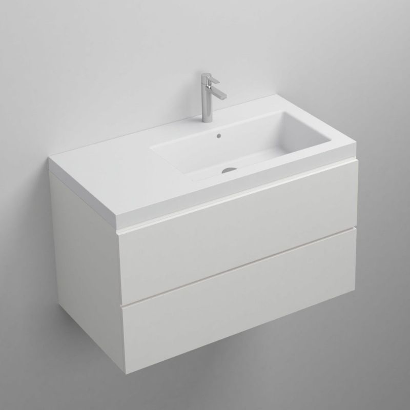 Lavoar Zina, compozit mineral, montaj semi-incastrat, cu cuva pe dreapta, 90x47 cm