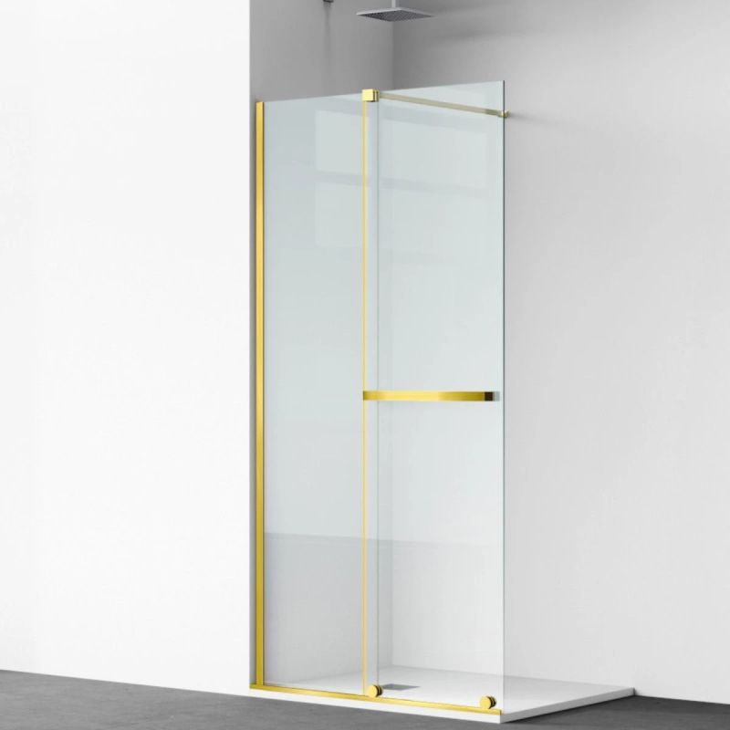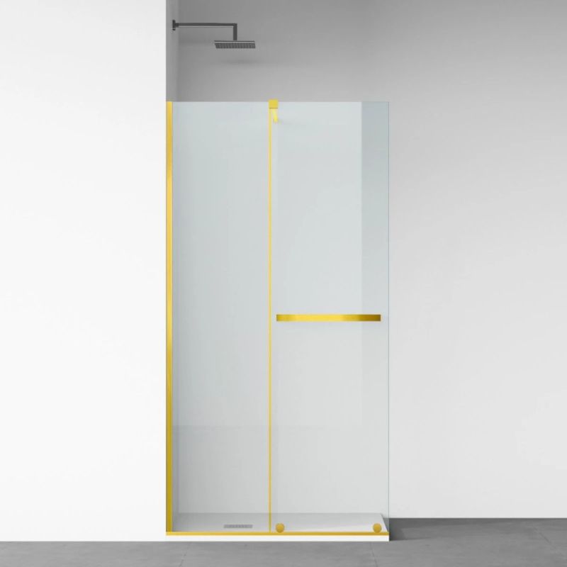 Perete dus Walk-In, sticla securizata de 6 mm, 2 elemente, glisant, dimensiuni 120x200 cm, Auriu Mat, Benito