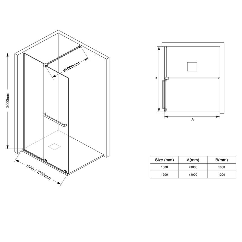 Panou Glisant si Panou Fix: Peretele de dus Walk-In este compus dintr-un panou glisant si unul fix, oferindu-va flexibilitatea de a va ajusta spatiul de dus in functie de preferintele dvs.