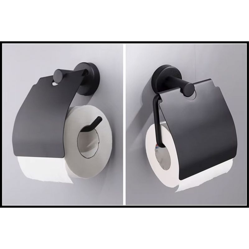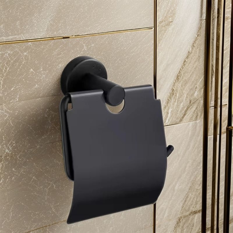 Suport hartie igienica cu clapeta, Negru Mat, otel, design modern, Velvet