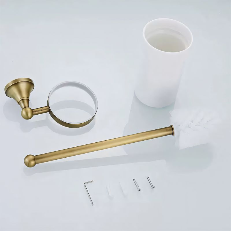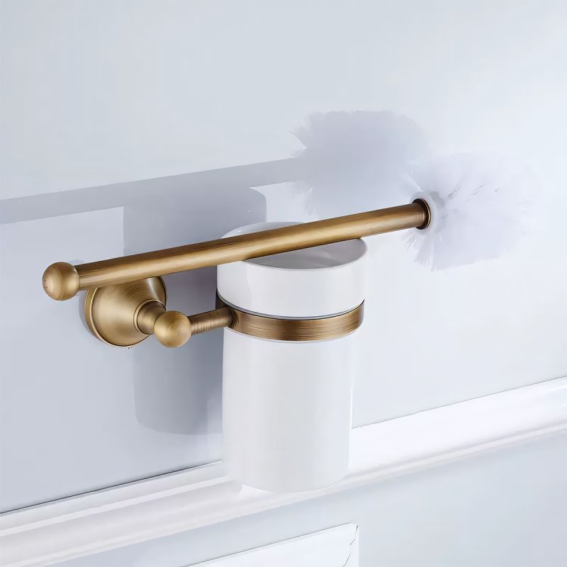 Perie toaleta cu suport inclus, montaj pe perete, Auriu Mat, Alama, Ceramica, Velvet