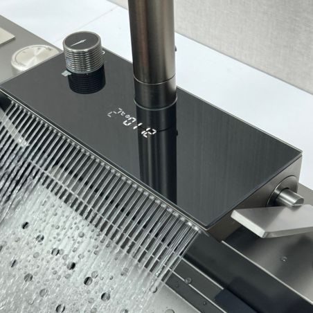 Baterie bucatarie, Display Digital Hidroelectric cu Cascada, dus extractabil, pipa rotativa 360 de grade, Gun grey, Ingrid