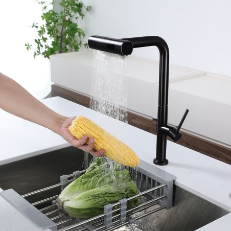 Baterie bucatarie, dus extractabil ,3 tipuri de pulverizare, pipa rotativa 360°, perlator, otel inoxidabil, Negru, Sahara