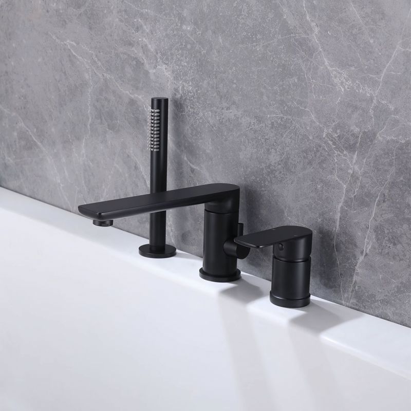 Baterie cada, perlator, pipa rotativa, 3 gauri, negru, alama, Toledo