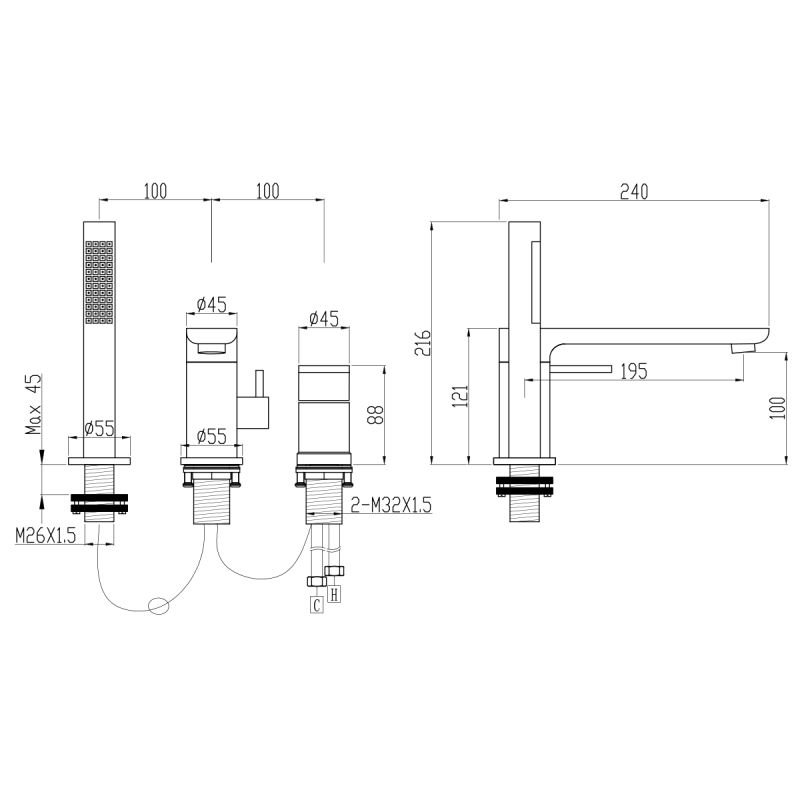 Design modern cu montaj in 3 gauri – ofera o solutie eleganta si functionala pentru cazi freestanding sau incastrate, cu un aspect arhitectural deosebit