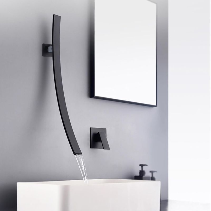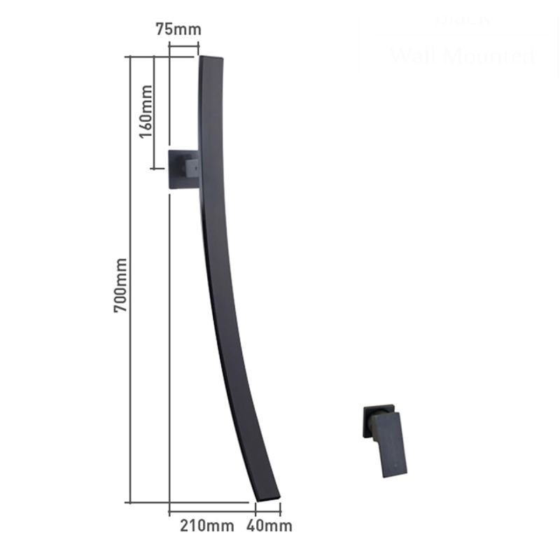 Baterie lavoar, tip cascada, monocomanda, Negru Mat, alama, montaj incastrat in perete, Fluvia