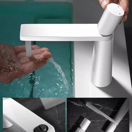 Baterie lavoar Pilar, Alb Mat, inaltime 18.5 cm, montaj pe lavoar