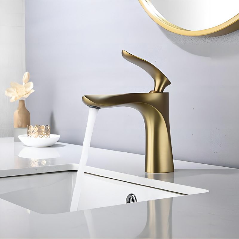 Baterie lavoar Brandi, Auriu periat, inaltime 16.5 cm, montaj pe lavoar