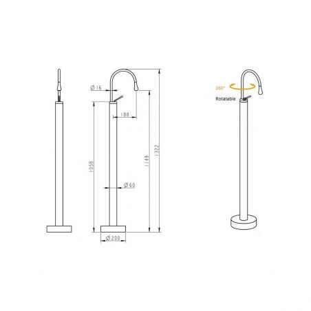 Baterie lavoar Lost, Negru Mat, montaj pe podea , cadru rotund si rotire 360 grade