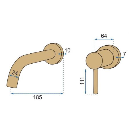Baterie lavoar REA-Lun Gold, montaj incastrat in perete, finisaj auriu, design minimalist
