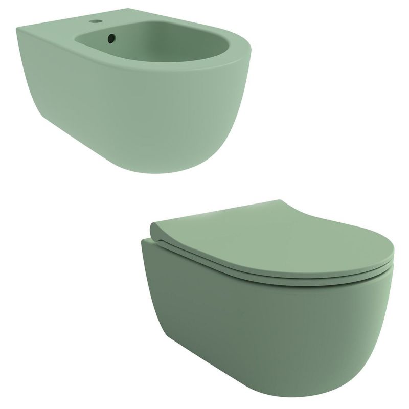 Vas bideu Verde Mint Mat, Power Colour, 49x36 cm , montaj suspendat, cu preaplin, Molis