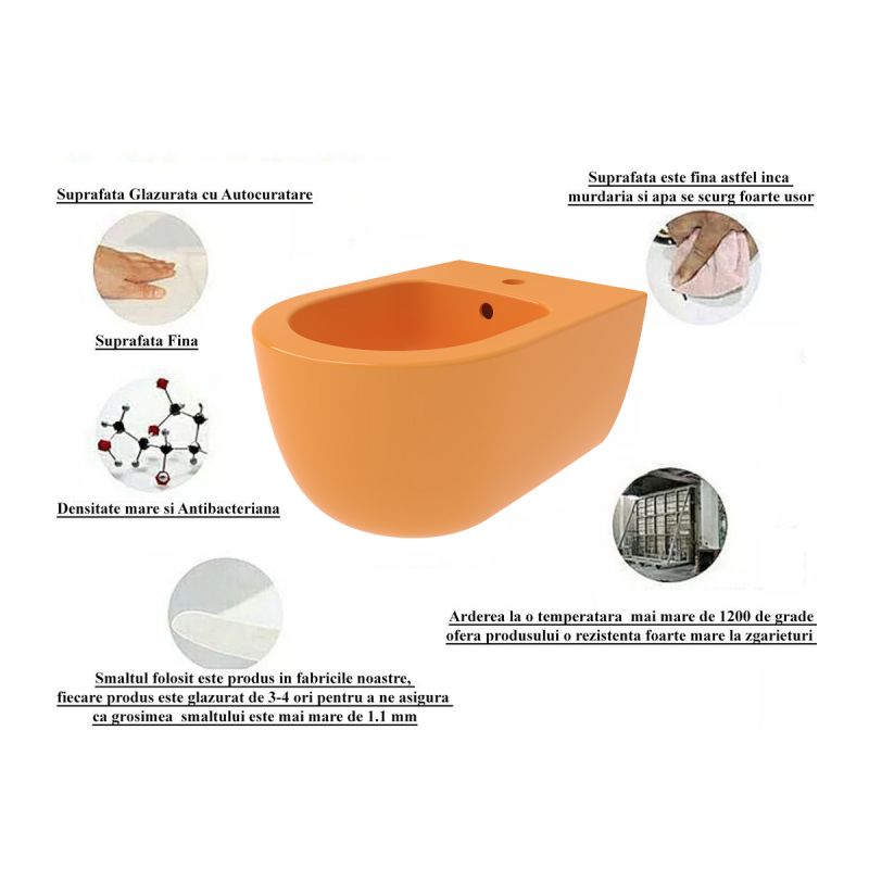 Vas bideu Mandarin Lucios, 49x36 cm, montaj suspendat, cu preaplin, Michael
