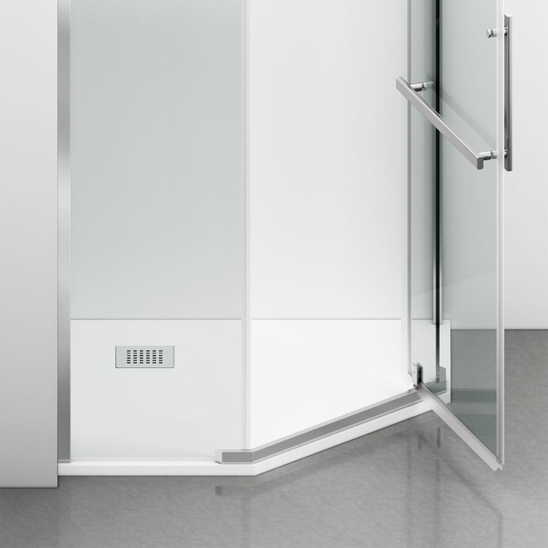 Forma pentagonala si montajul pe colt transforma modelul Leon intr-o solutie ideala pentru bai de orice dimensiune, permitand economisirea spatiului fara a face compromisuri in ceea ce priveste confortul. Aceasta configuratie creeaza un spatiu de dus amplu, bine definit si usor accesibil.
