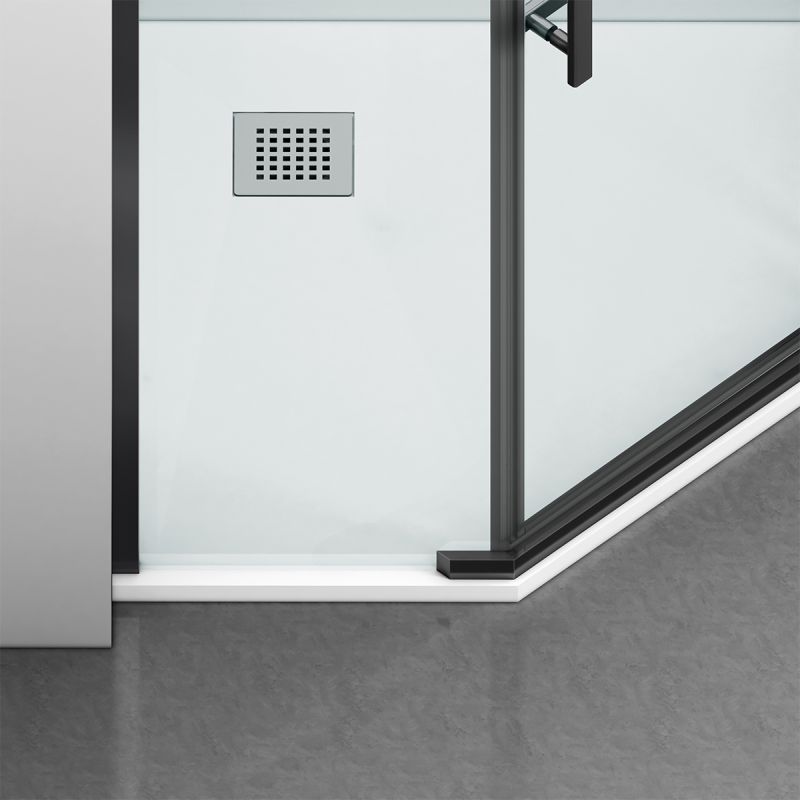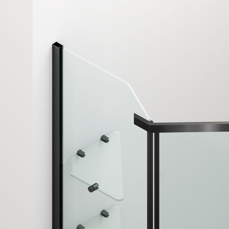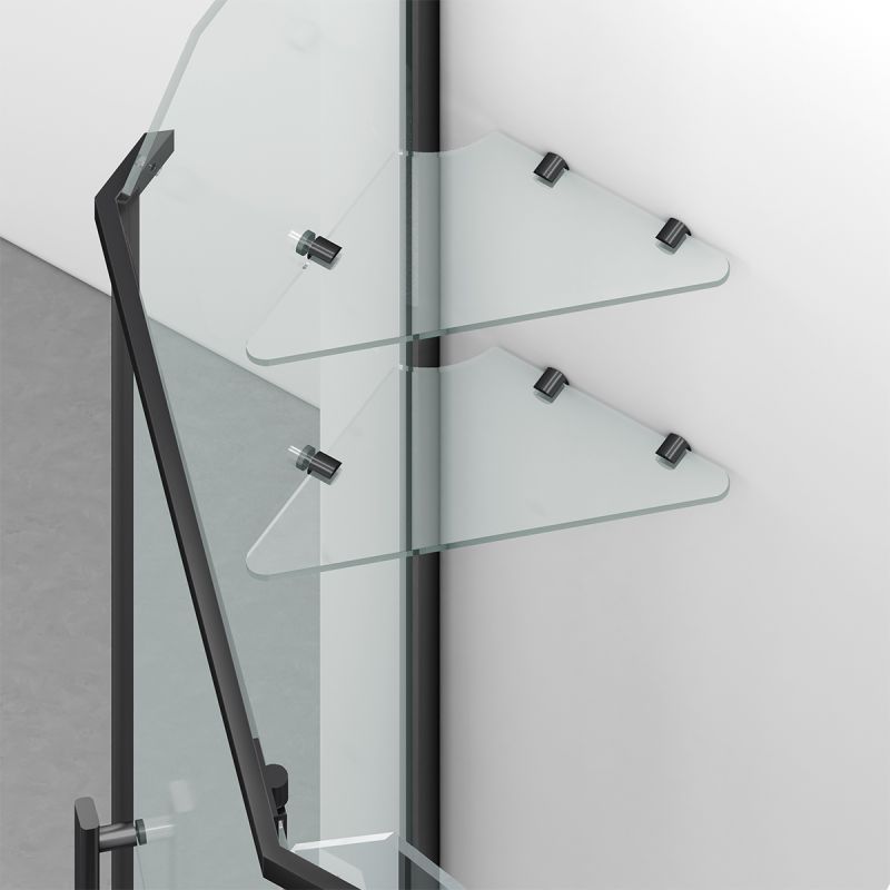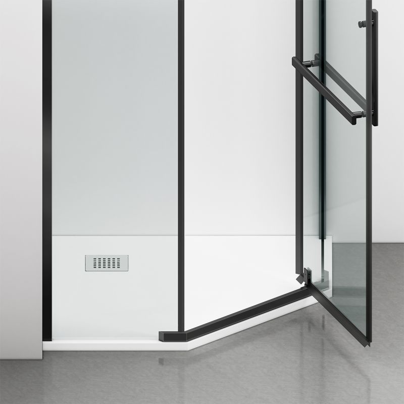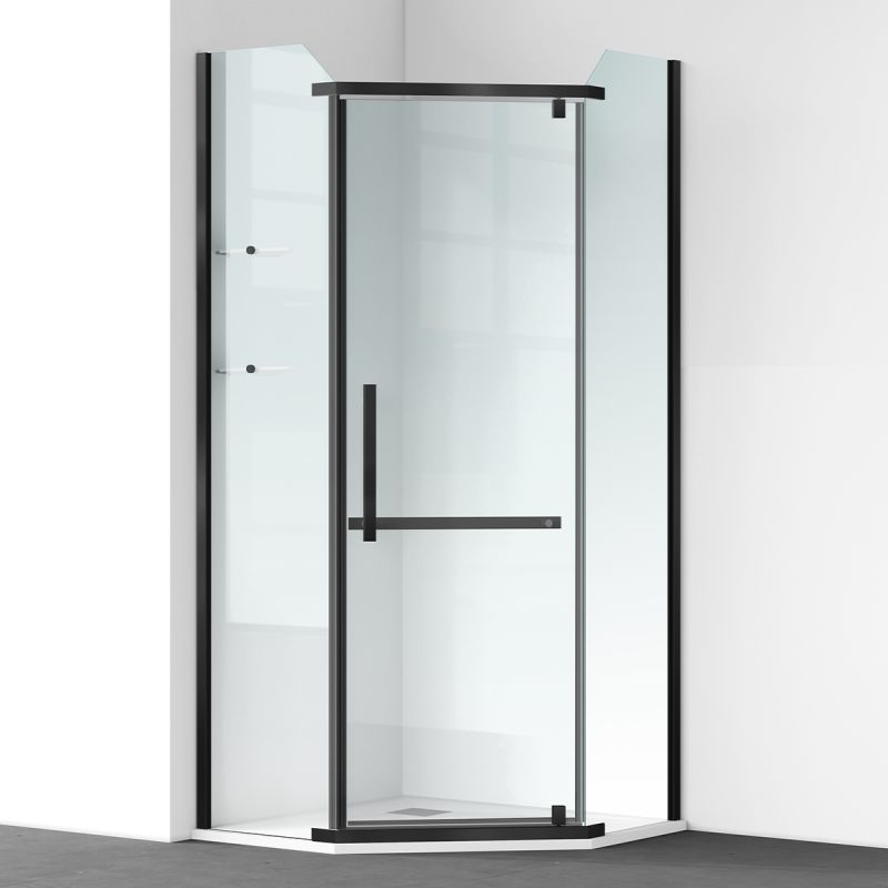 Cabina de dus, pentagonala, usa batanta, Negru Mat, sticla 8 mm, suport prosoape, 2 rafturi, 90 x 90 cm, Nano Easy Clean, Leon