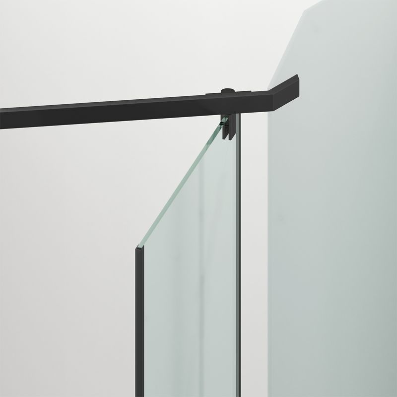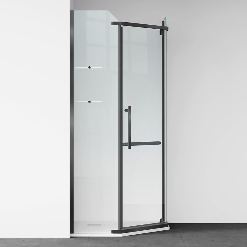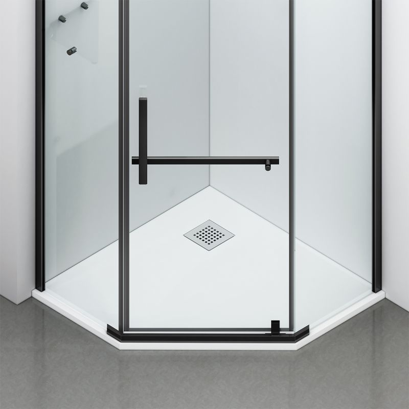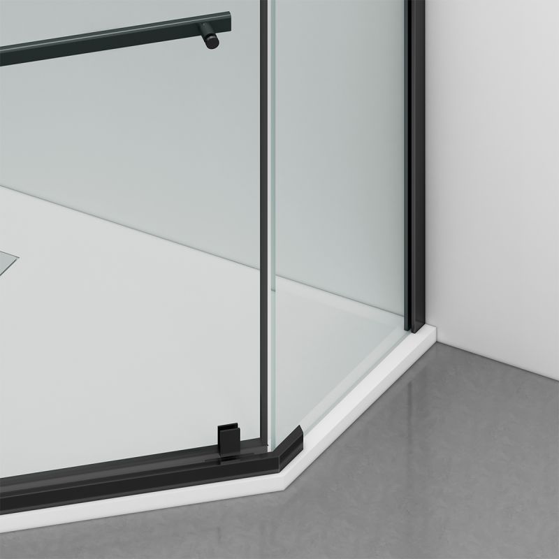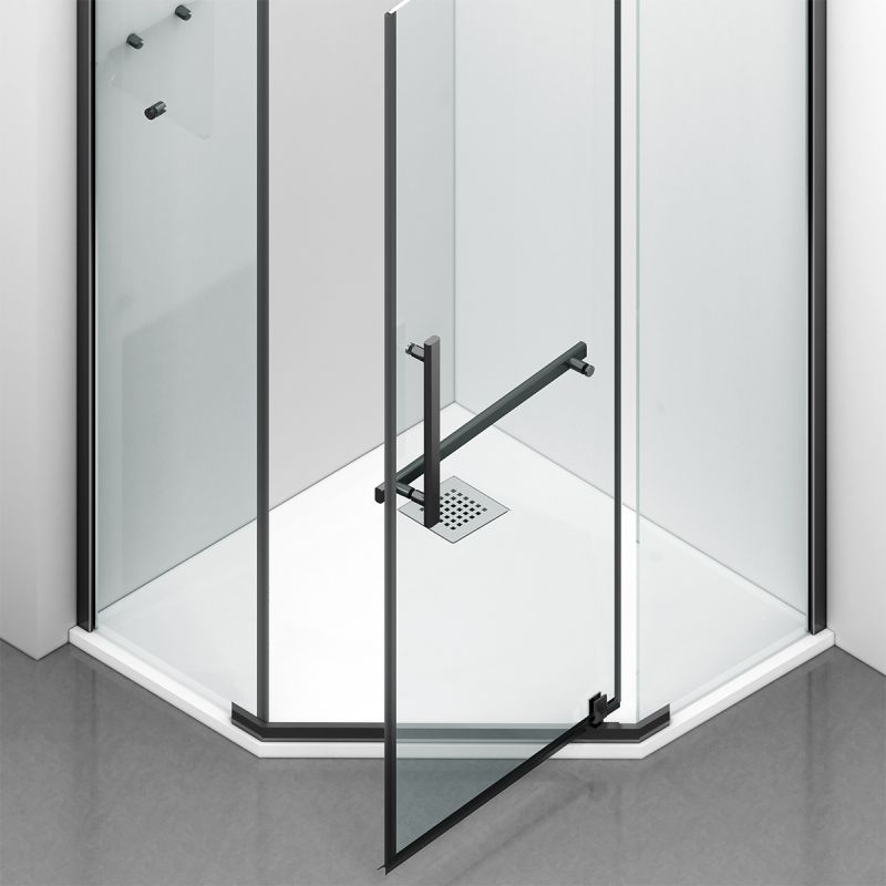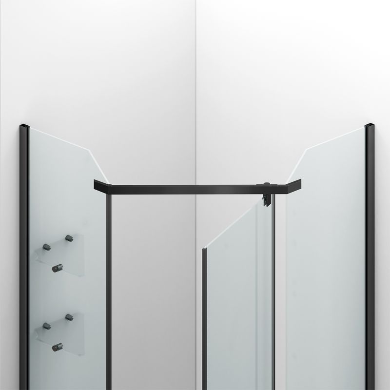 Cabina de dus, pentagonala, usa batanta, Negru Mat, sticla 8 mm, suport prosoape, 2 rafturi, 90 x 90 cm, Nano Easy Clean, Leon