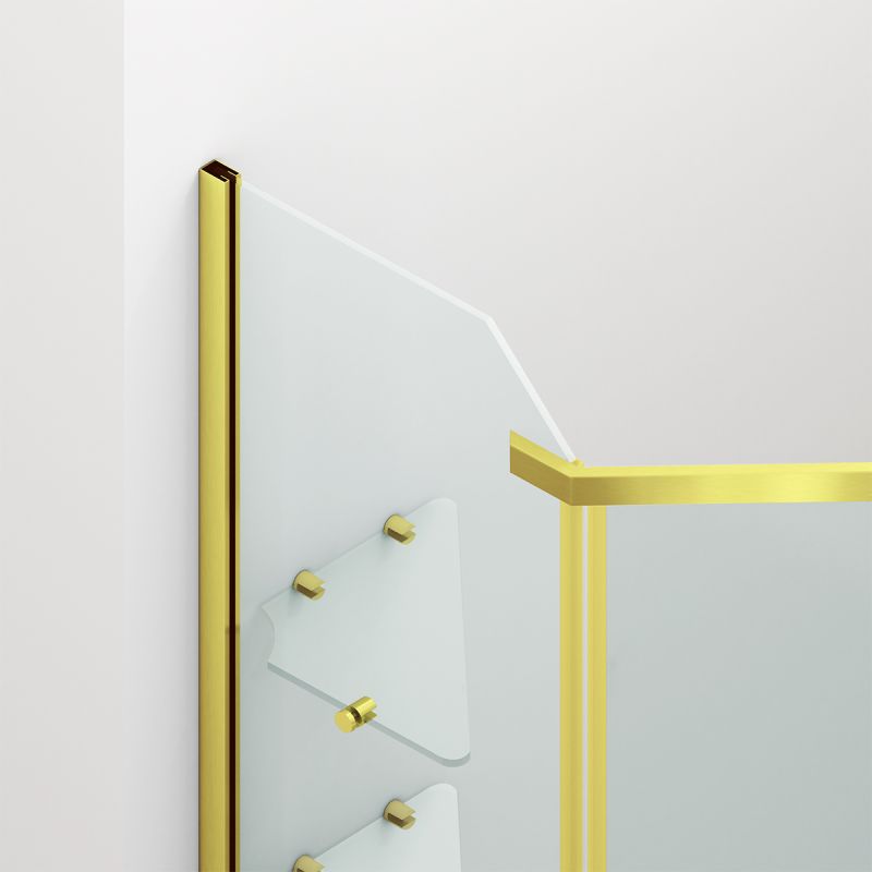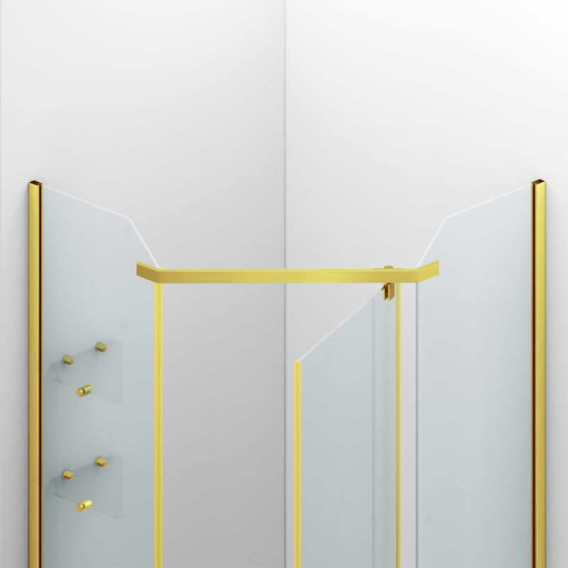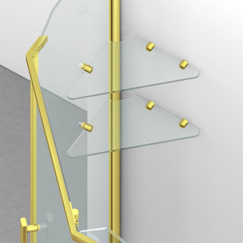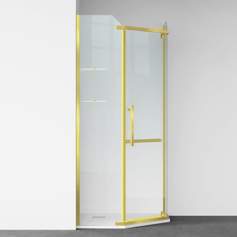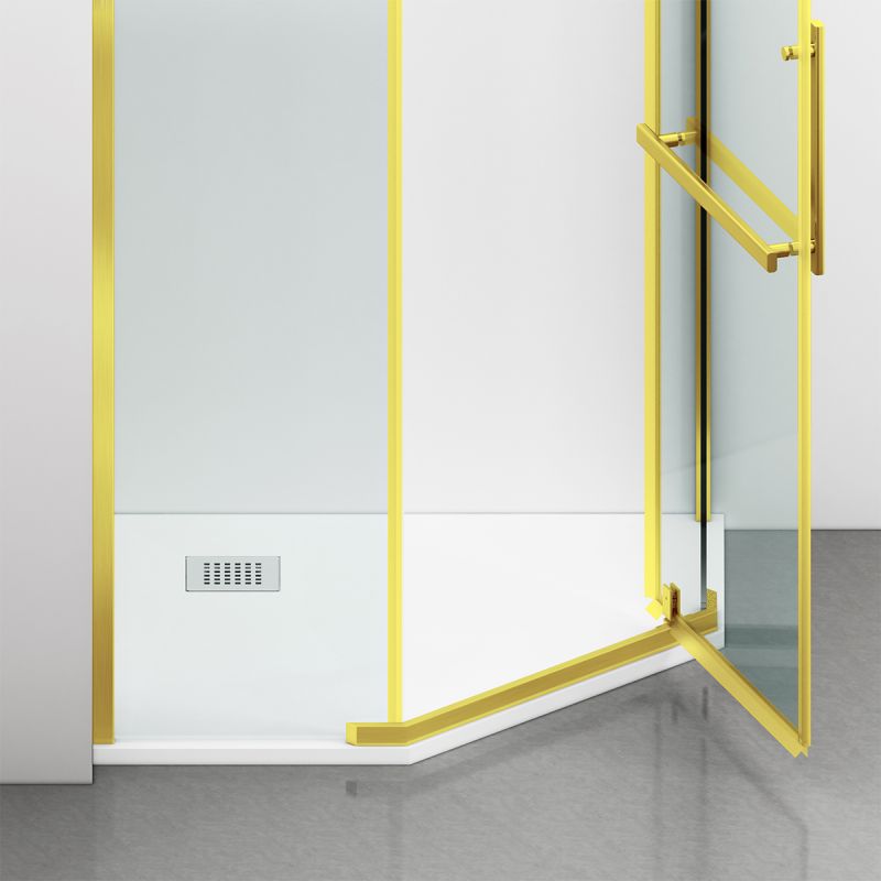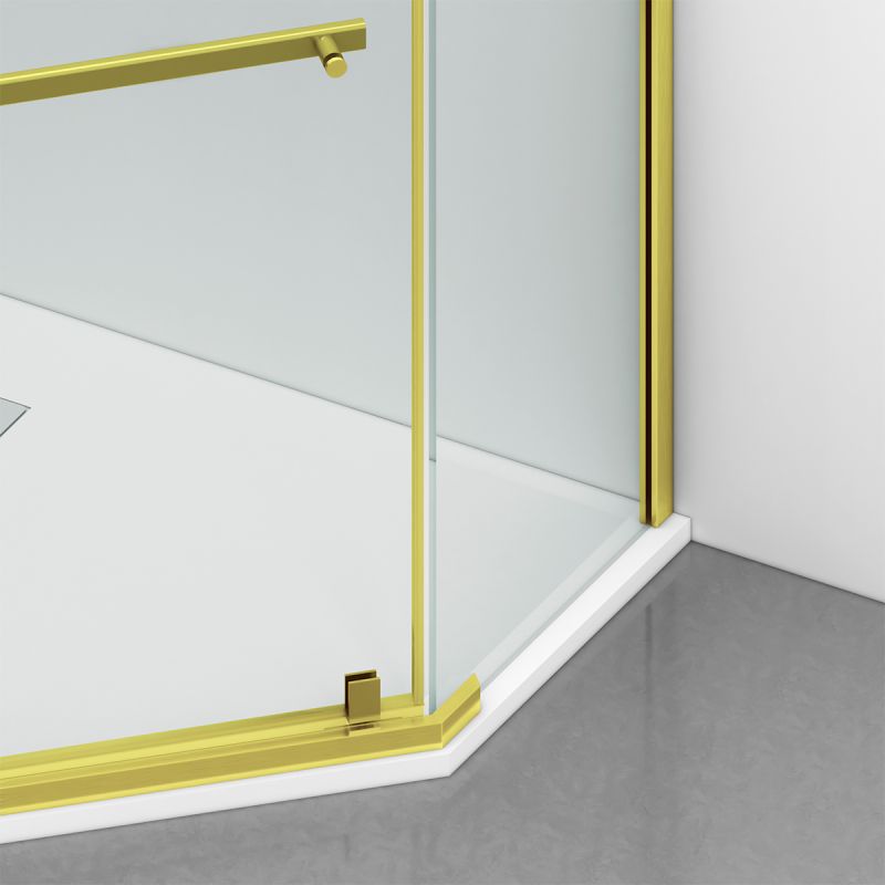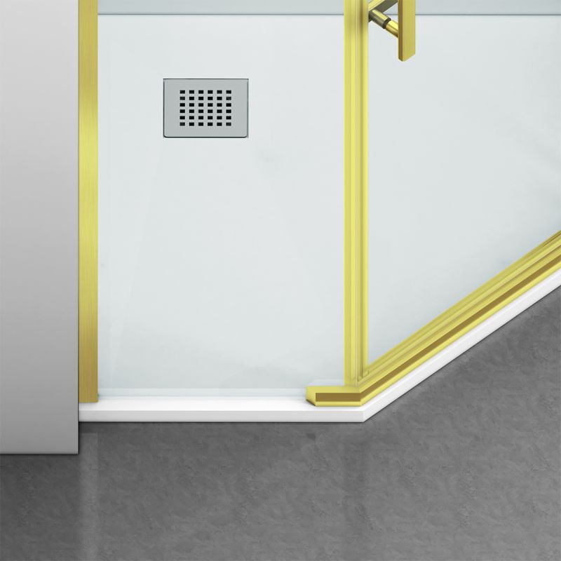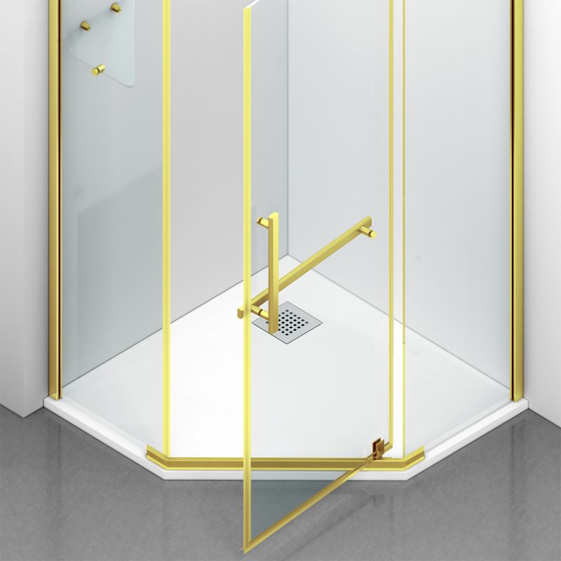 Cabina de dus, pentagonala, usa batanta, Auriu Mat, sticla 8 mm, suport prosoape, 2 rafturi, 90 x 90 cm, Nano Easy Clean, Leon