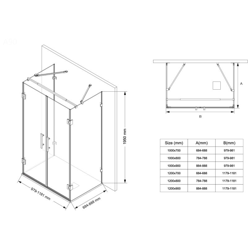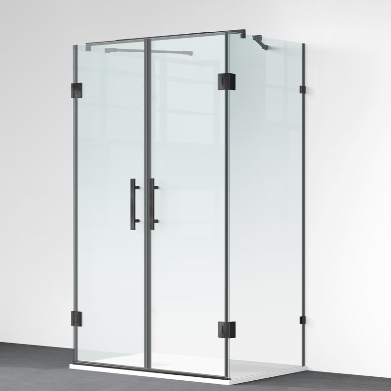 Cabina de dus, 3 laturi, Usa batanta, Negru Mat, Sticla 8 mm, Tratament Nano, Dimensiuni 70-80-90x100-120 cm, Trinity