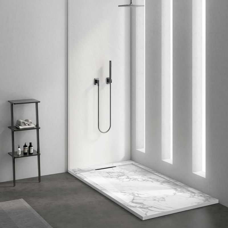 Cadita de dus, Alb, finisaj Carrara Arabescato, compozit, inaltime 2.5 cm, dimensiuni 100-160x80-90 cm, decupabila, Antonio