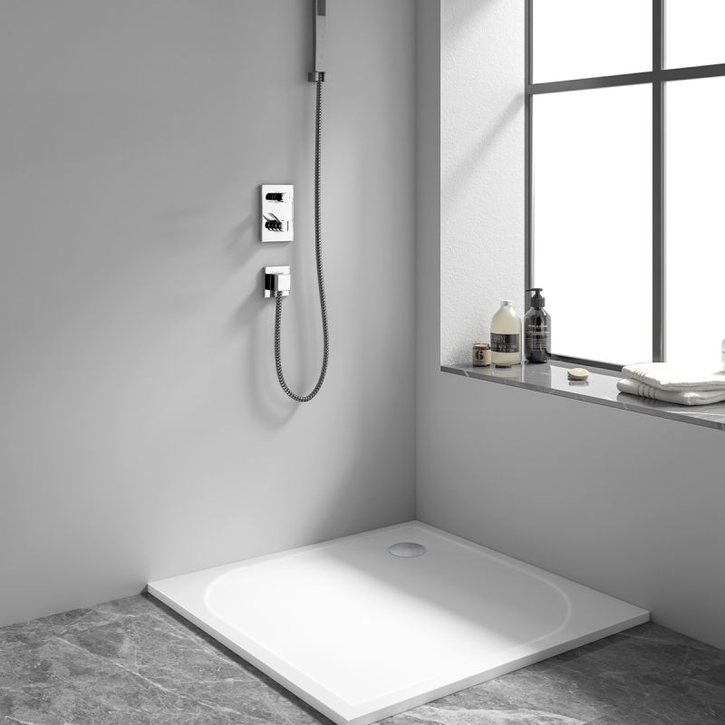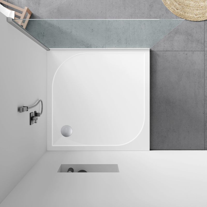 Cadita de dus, patrata, Alb Lucios, compozit mineral, inaltime 2.5 cm, 80x80-90x90, Fresca