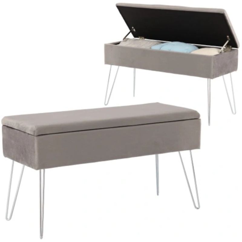 Bancuta cu spatiu de depozitare, tapitata cu catifea, hol sau camera, Gri, Ashley