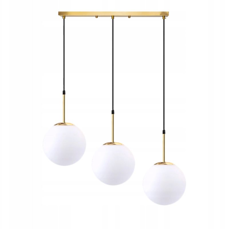 Lustra EGO Kula, 3 socluri, E27, Auriu/Alb, 230V, globuri de sticla alba