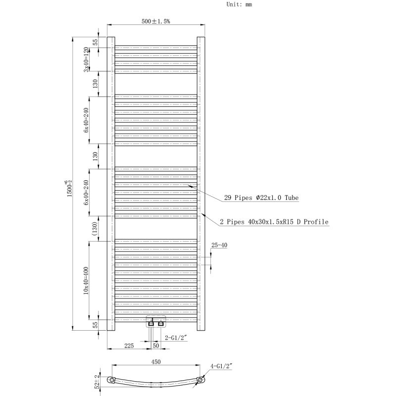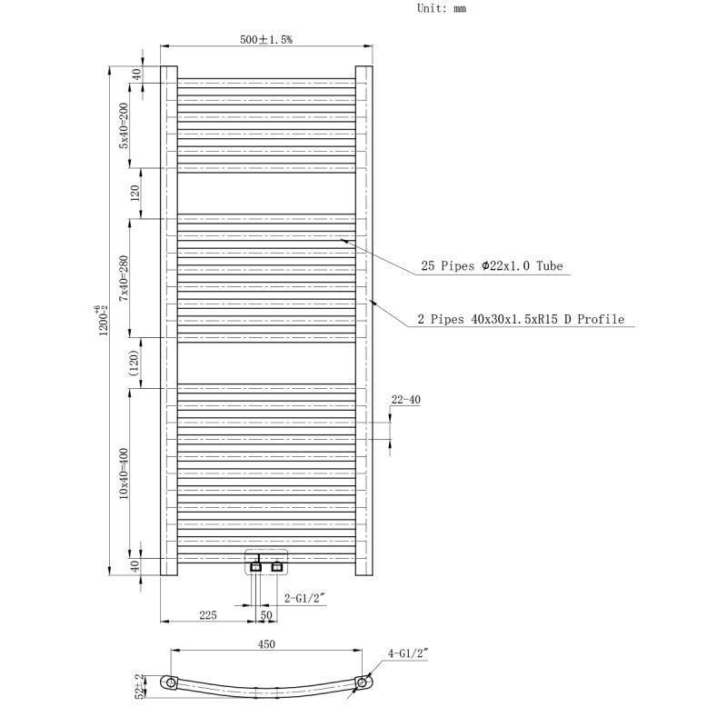 120x50 cm – 25 elementi putere terminca: 535 watt – optim pentru bai compacte