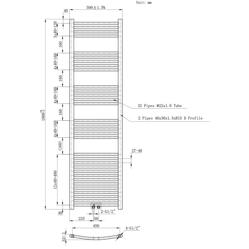 180x50 cm – 32 elementi – putere terminca: 718 watt recomandat pentru spatii mai ample, cu necesar termic crescut
