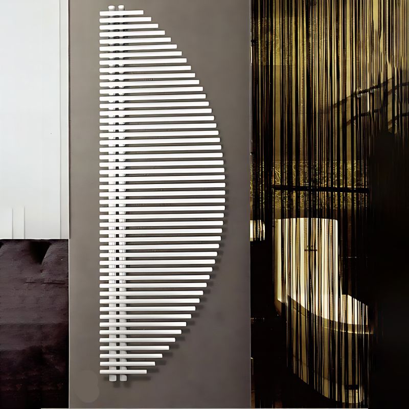 Design curbat artistic cu impact vizual puternic – forma fluida si asimetrica transforma caloriferul intr-un element decorativ central in baie, adaugand rafinament si personalitate fara a compromite functionalitatea.