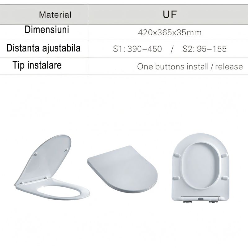 Capac slim Duroplast inchidere Soft-Close, distanta ajustabila, Quick Release, pentru vas wc Ben Granit Lucios