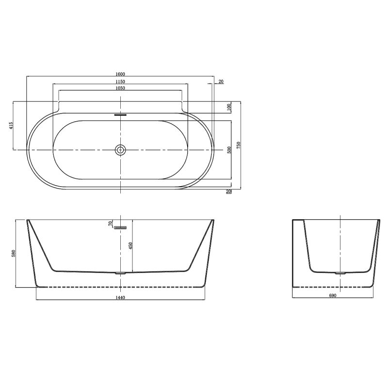 Cada de baie, freestanding, baterie si ventil inclus, Acril, 160x75 cm, Miraj