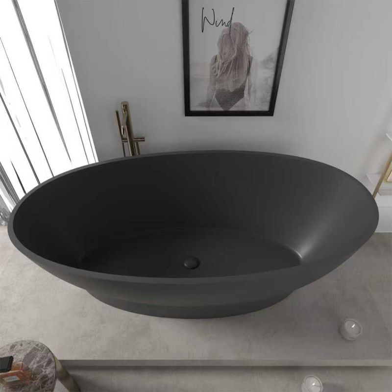 Cada de baie, freestanding, compozit mineral, ventil negru inclus, Negru Mat, 160x83 cm, Edena