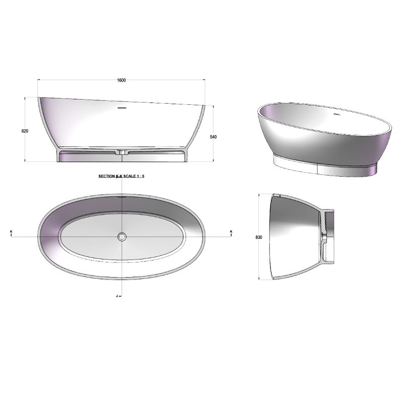 Cada de baie, freestanding, compozit mineral, ventil inclus, Antracit Mat, 160x83 cm, Edena