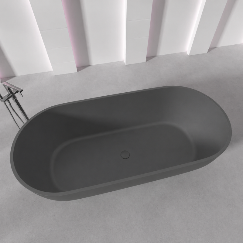 Textura cazii este luxoasa, neteda si catifelata, placuta la atingere si conceputa pentru o experienta senzoriala superioara. Suprafata fara imbinari vizibile confera un aspect curat, elegant si fluid, iar forma freestanding amplifica senzatia de spatiu si rafinament.