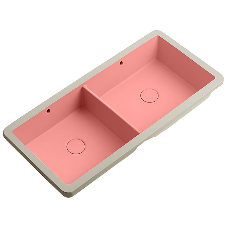 Chiuveta bucatarie dubla 2 cuve, Roz Somon Mat, Power Color, montaj incastrat sub blat, 88x39 cm, Serena