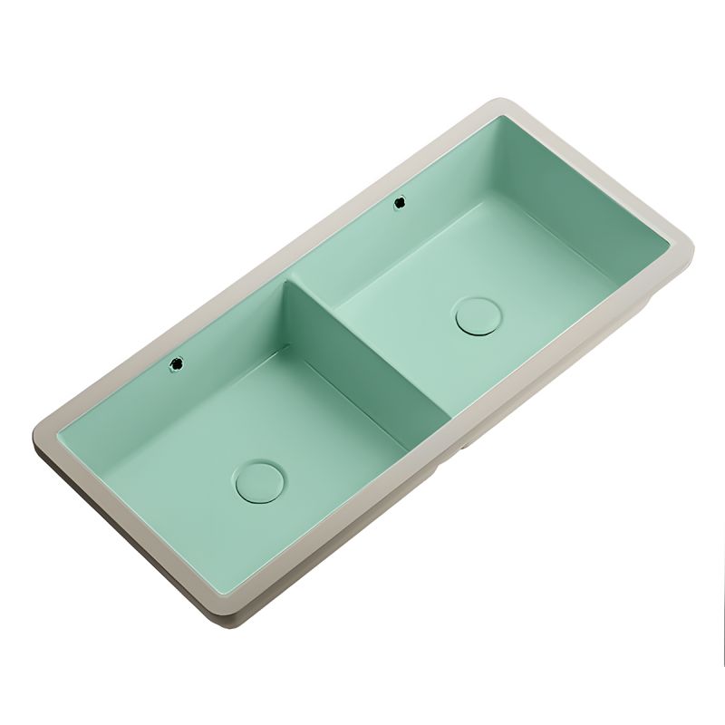 Chiuveta bucatarie dubla, 2 cuve, Verde Mint Mat, Power Color, montaj incastrat sub blat, 88x39 cm, Serena