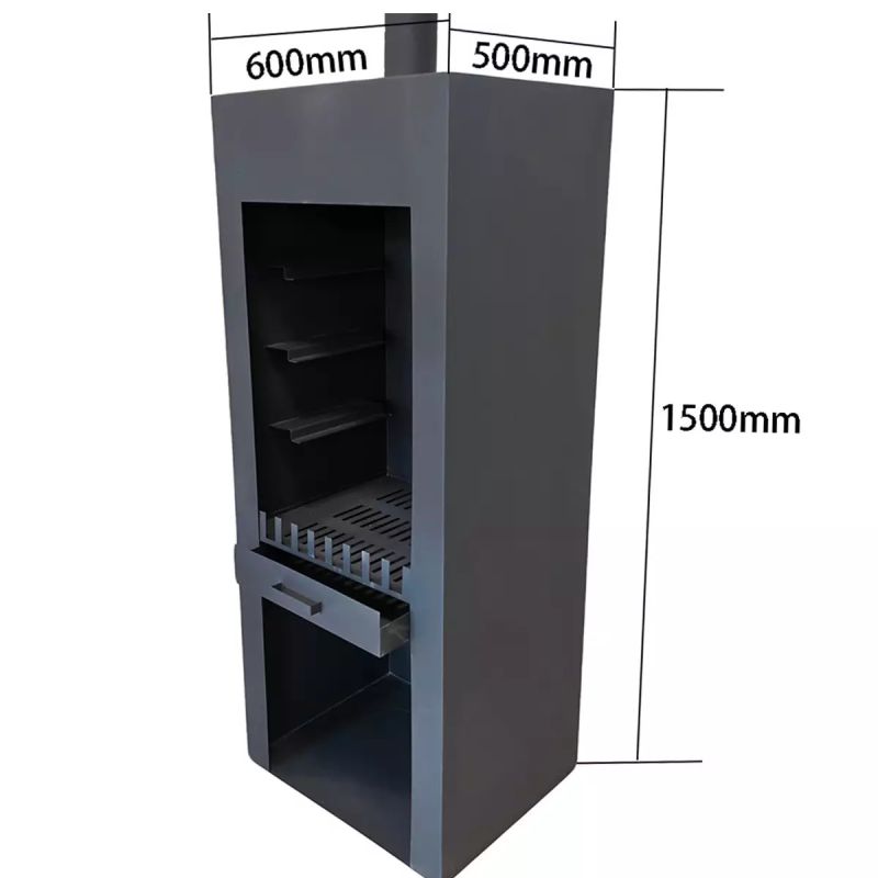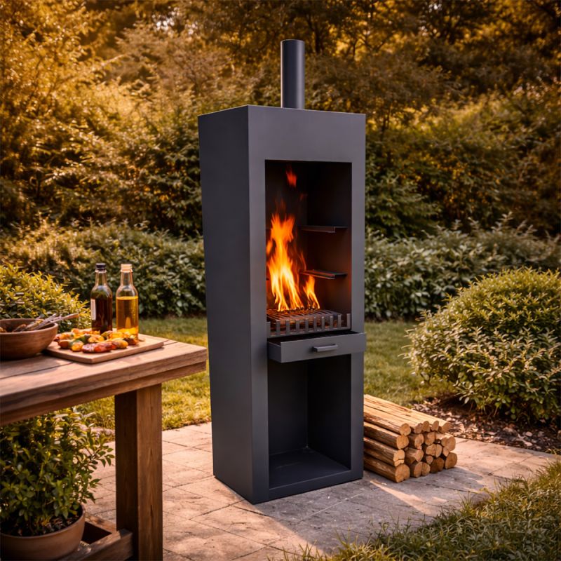 Cosul de fum vertical contribuie la evacuarea eficienta a fumului si imbunatateste circulatia aerului in camera de ardere. Astfel, focul arde mai uniform, iar utilizatorii se pot bucura de caldura si de preparatele gatite fara disconfortul provocat de fum.