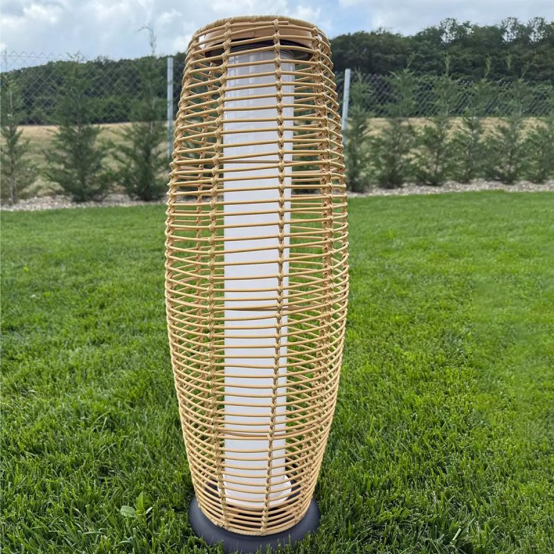 Iluminare ambientala eleganta – Designul cu impletitura din poliratan creeaza un joc placut de lumini si umbre, oferind o atmosfera calda si relaxanta in orice spatiu exterior.