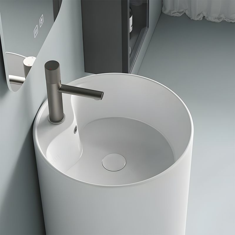 Montajul pe podea elimina nevoia unui blat sau mobilier de sustinere, punand in valoare geometria pura si proportiile echilibrate ale lavoarului. Este o alegere ideala pentru baile premium, saloanele spa sau proiectele rezidentiale exclusiviste care valorizeaza designul contemporan.