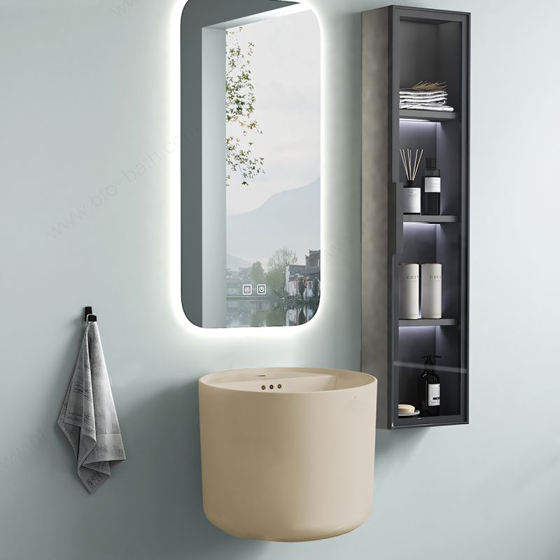 Designul circular al lavoarului (45x45x38 cm) creeaza o senzatie de fluiditate si confort vizual. Liniile moi si forma echilibrata completeaza perfect un spatiu de baie ordonat, functional si primitor.