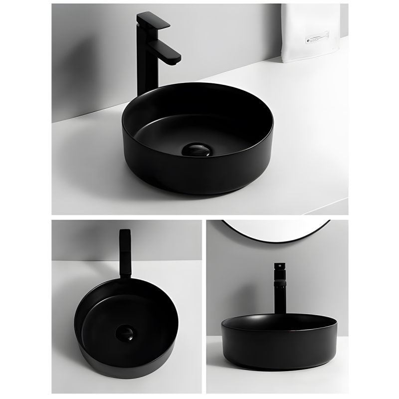 Lavoar, Negru Mat, Power color, montaj pe blat, ceramica sanitara, diametru 42 cm, Linea