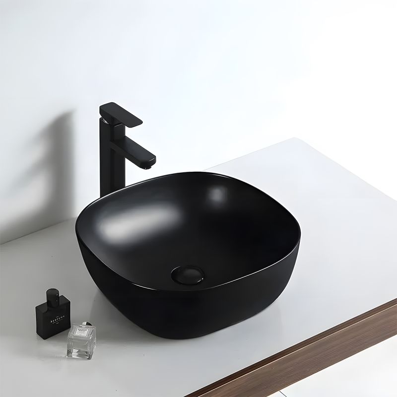 Lavoar, Negru Mat, Power Color, ceramica sanitara, montaj pe blat, 40.5x40.5 cm, Viva