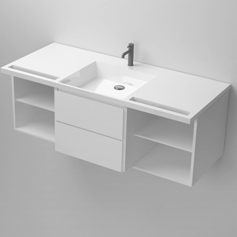 Lavoar, Alb Lucios, suport prosoape, compozit mineral , montaj suspendat pe perete sau semi-incastrat, 105-125x55 cm, Fuente