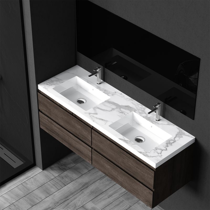 Durabilitate si igiena superioare – Fabricat din compozit mineral cu suprafata antibacteriana si waterproof, lavoarul rezista la zgarieturi, pete si umezeala, asigurand un mediu curat si sigur pe termen lung.