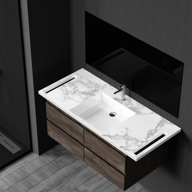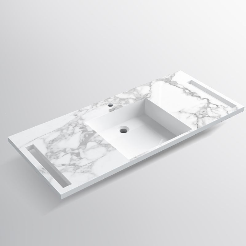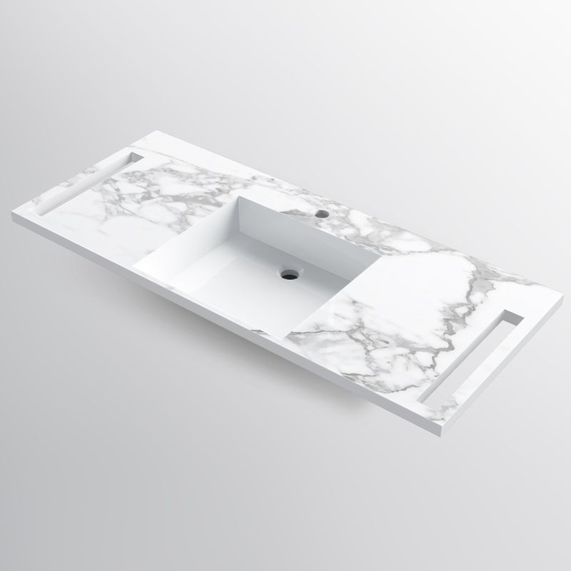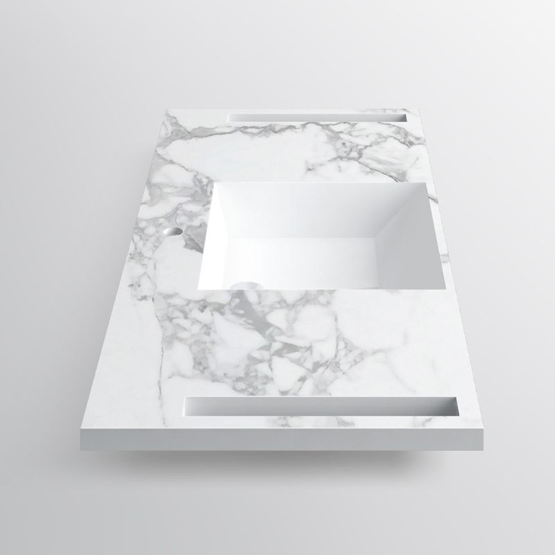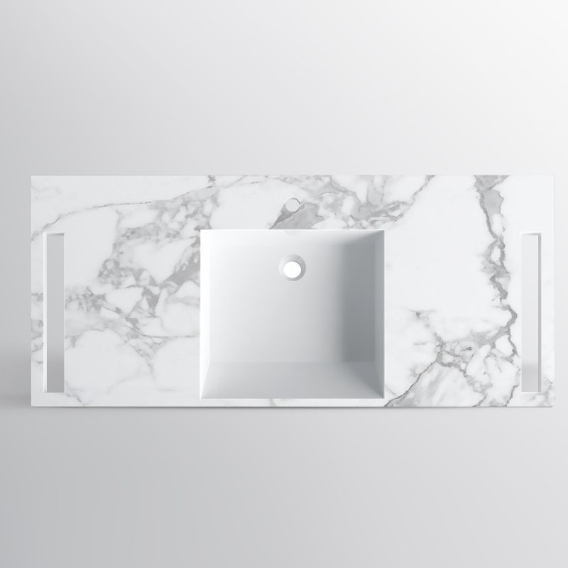 Lavoar, Alb finisaj Carrara Arabescato, suport prosoape, compozit, montaj suspendat sau semi-incastrat, 125x55 cm, Lavanda