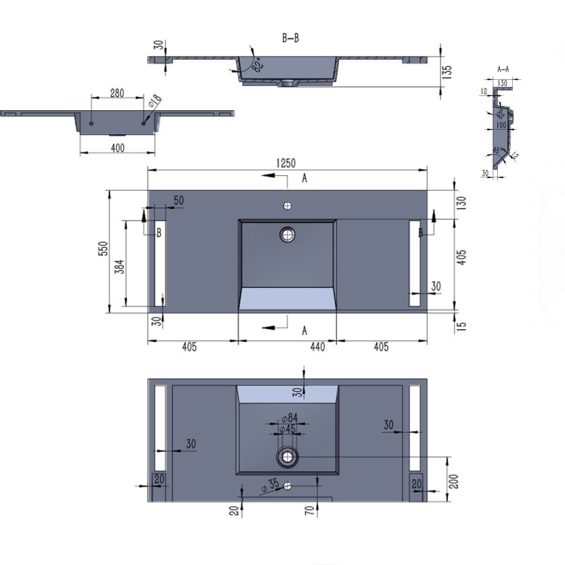Dimensiunile generoase de 125x55 cm ofera o suprafata extinsa, ideala pentru bai mari sau de familie, cu suporturi laterale pentru o organizare eficienta si acces facil la prosoape.