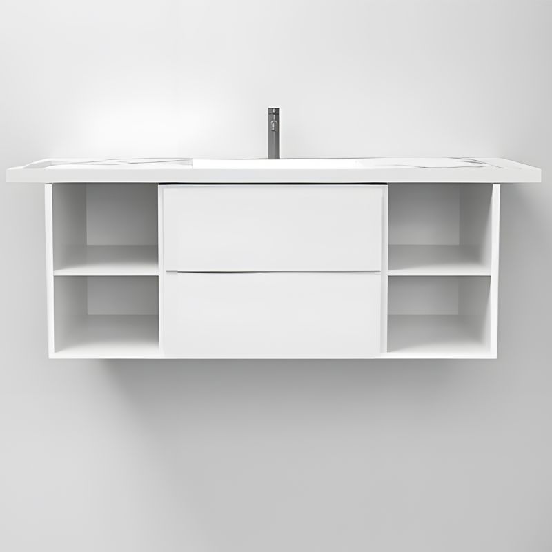 Lavoar, Alb finisaj Carrara Arabescato, suport prosoape laterale, compozit, montaj suspendat pe perete, 125x55 cm, Lavanda