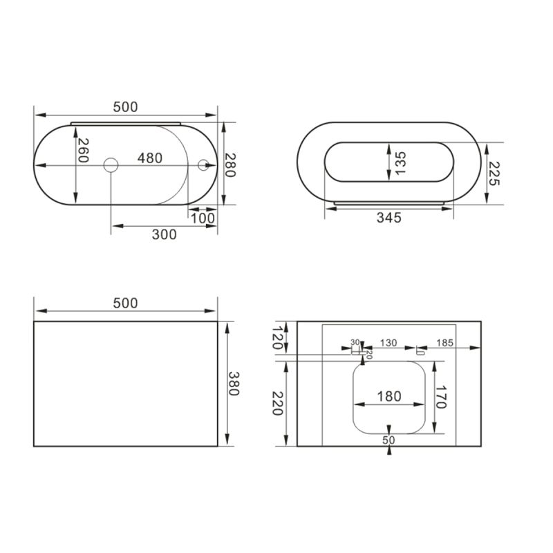 Lavoar, montaj suspendat, Alb Lucios, 50x28 cm, cu gaura de baterie, Siena