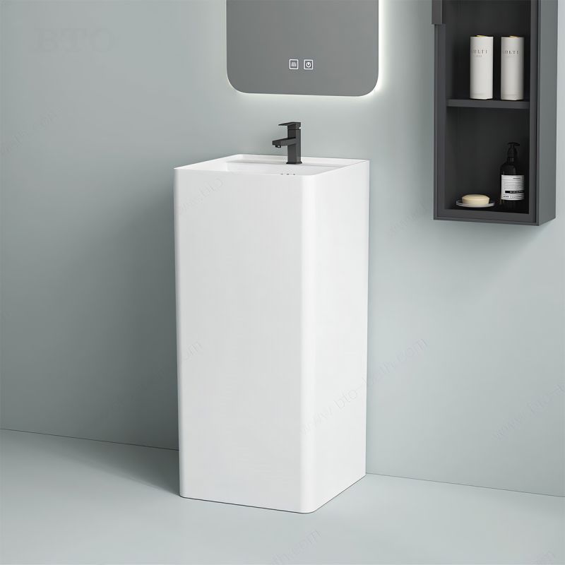 Lavoar stativ, freestanding, Alb Lucios, 45x36x85 cm, cu gaura de baterie, Colona