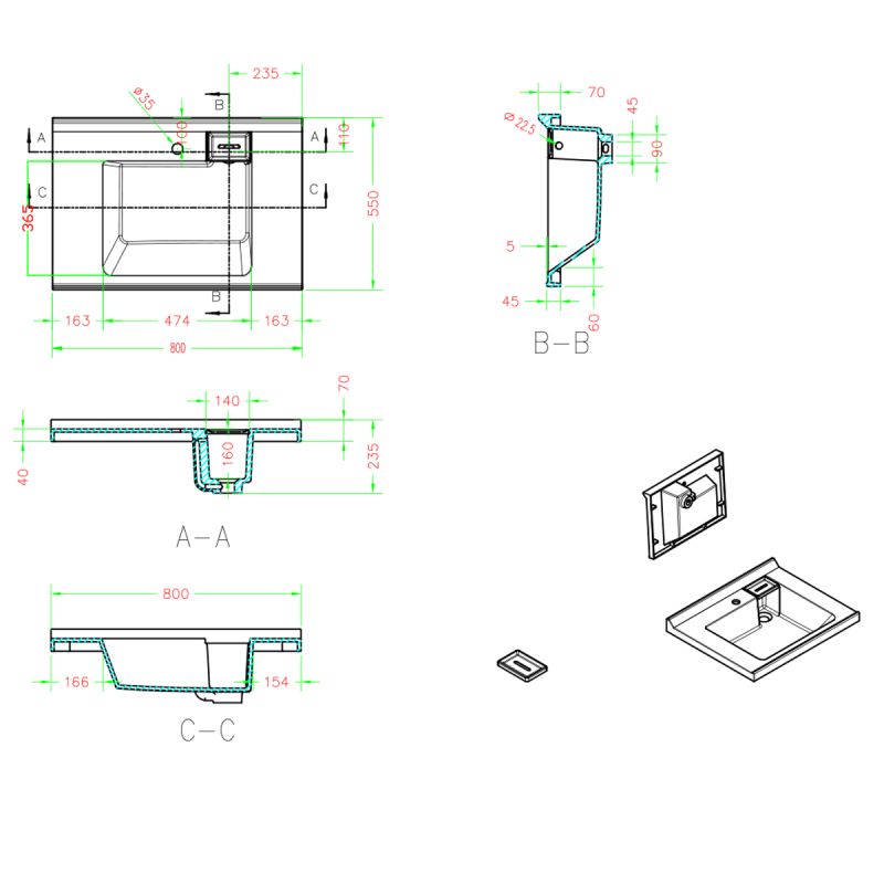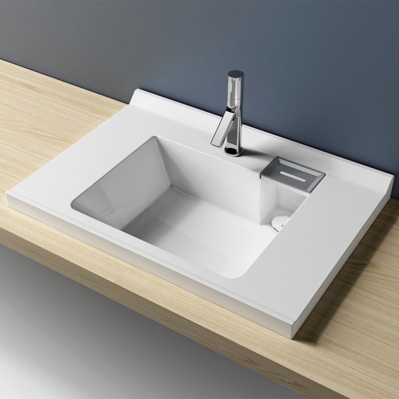 Lavoar, compozit mineral, montaj semi-incastrat, o gaura de baterie, suport de sapun si ventil alb inclus, 80x55 cm, Oslo