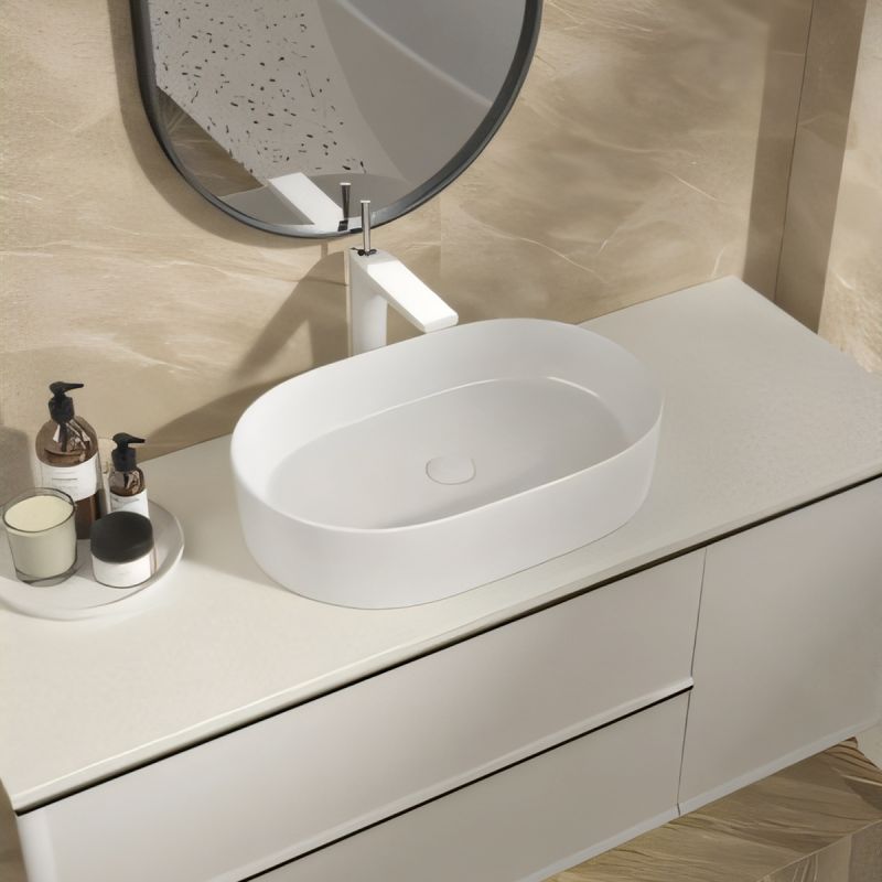 Design minimalist si elegant – Forma rectangulara cu margini rotunjite si finisajul alb lucios confera baii un aspect modern, aerisit si sofisticat, usor de integrat in orice tip de decor contemporan.